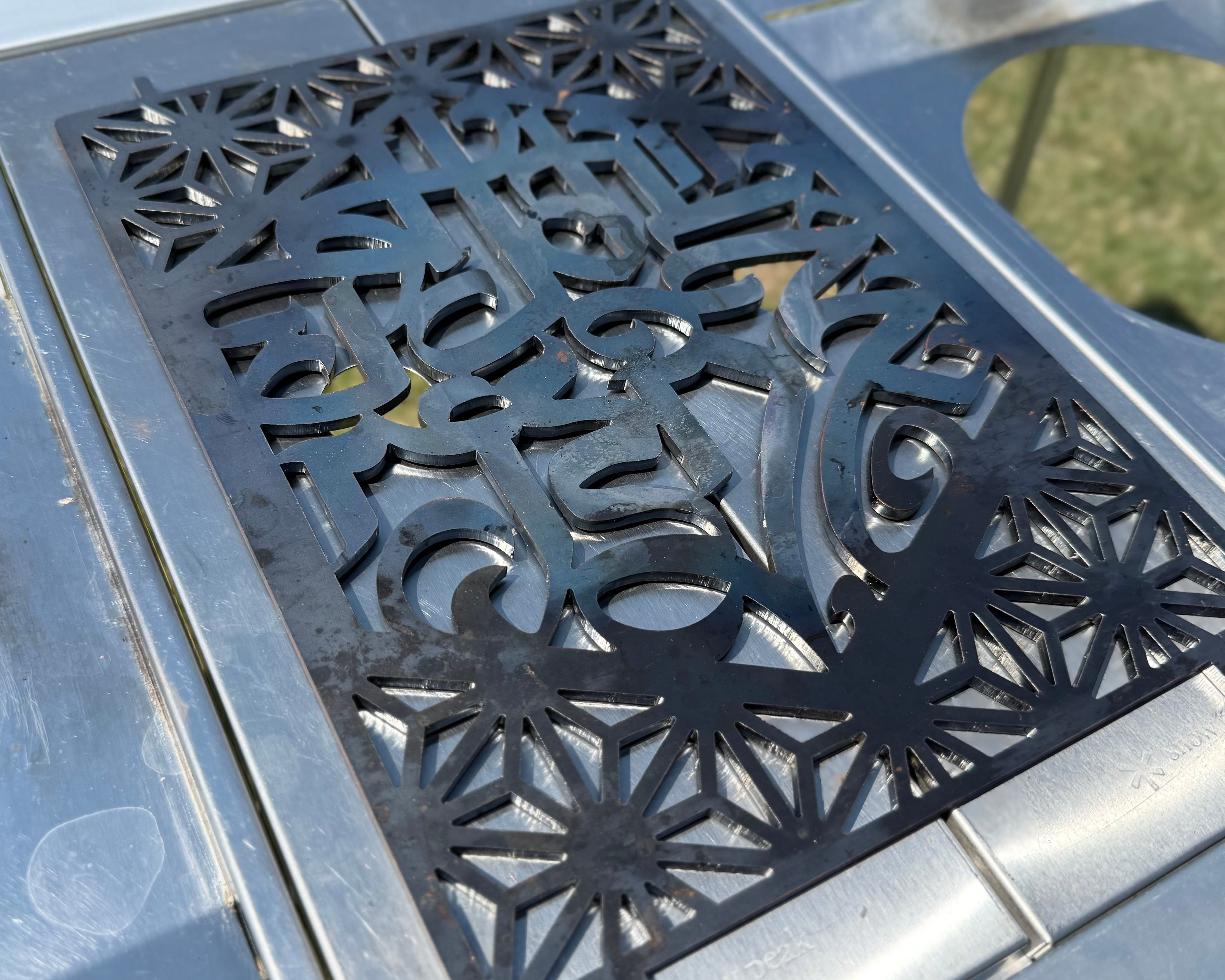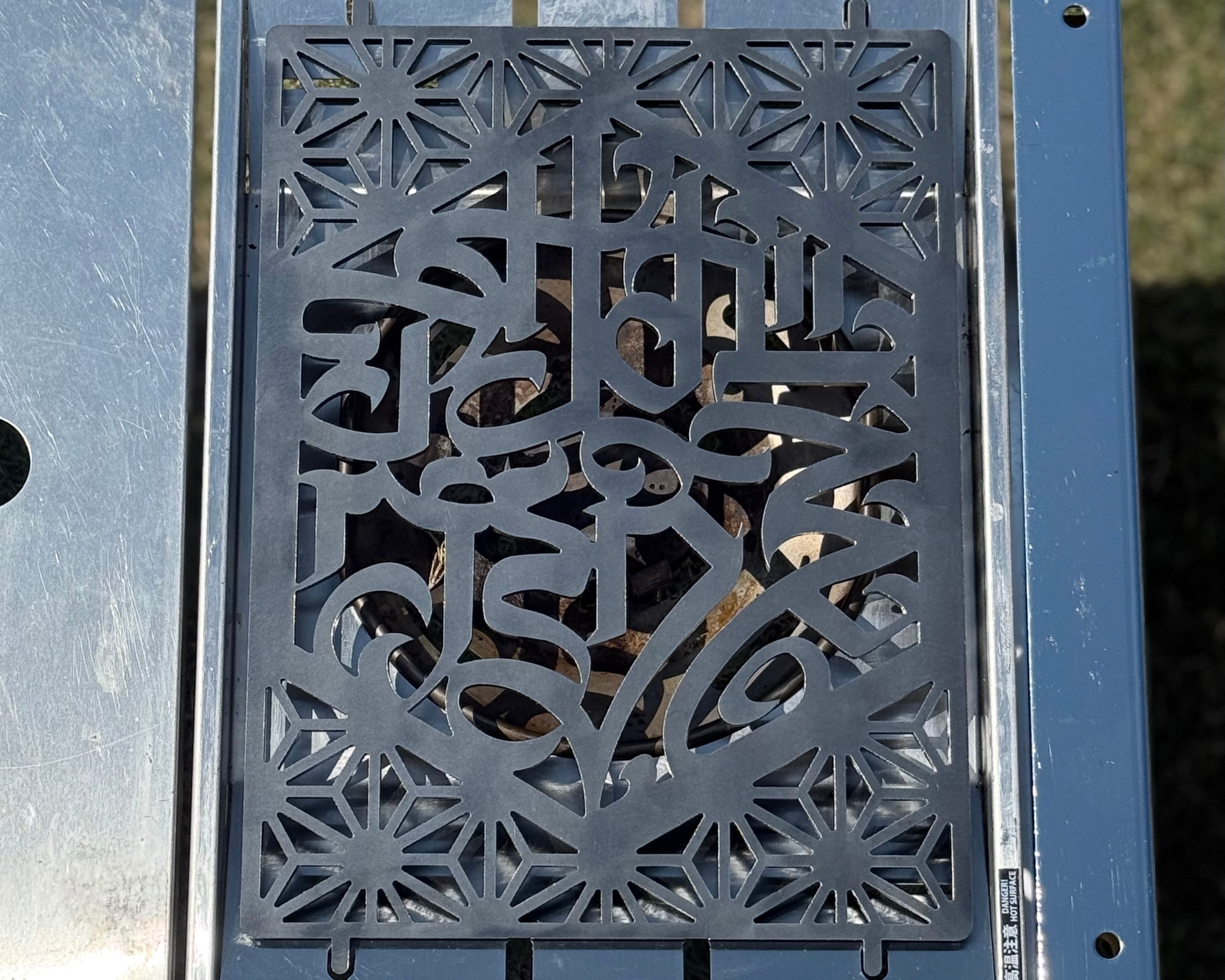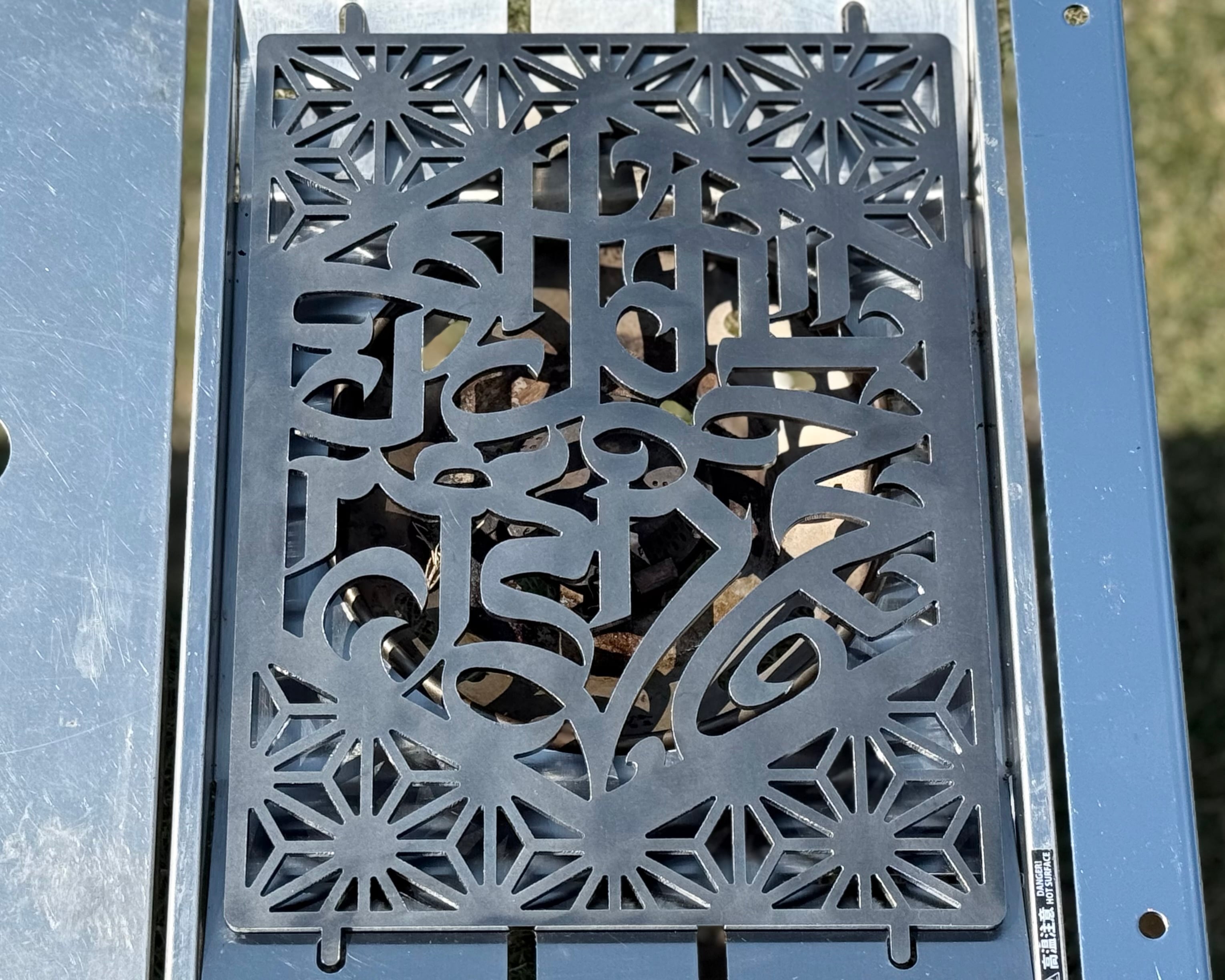 その周囲には、日本の伝統文様である麻の葉模様を、精密なレーザー加工で美しく仕上げていただきました。