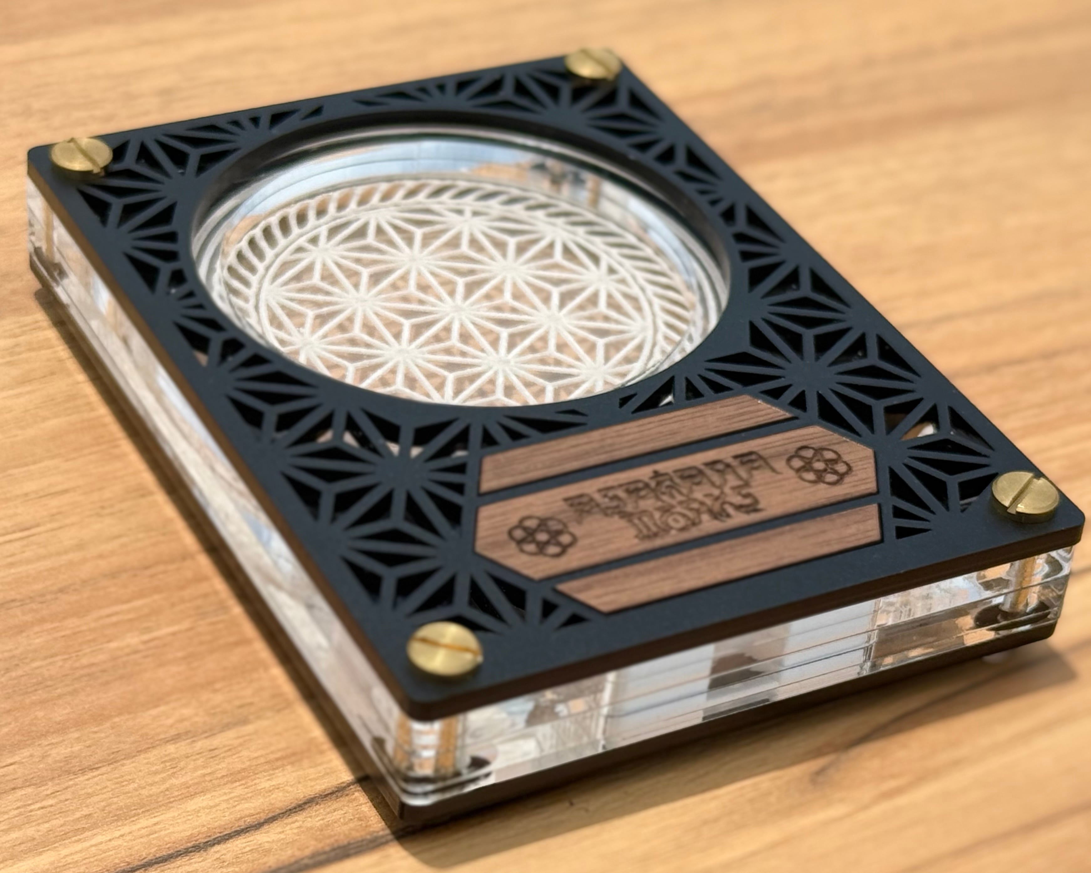 レーザーカットにより繊細に再現された「麻の葉模様」は、平安時代から続く縁起柄で、魔除けや子どもの成長を願う意味も込められています。