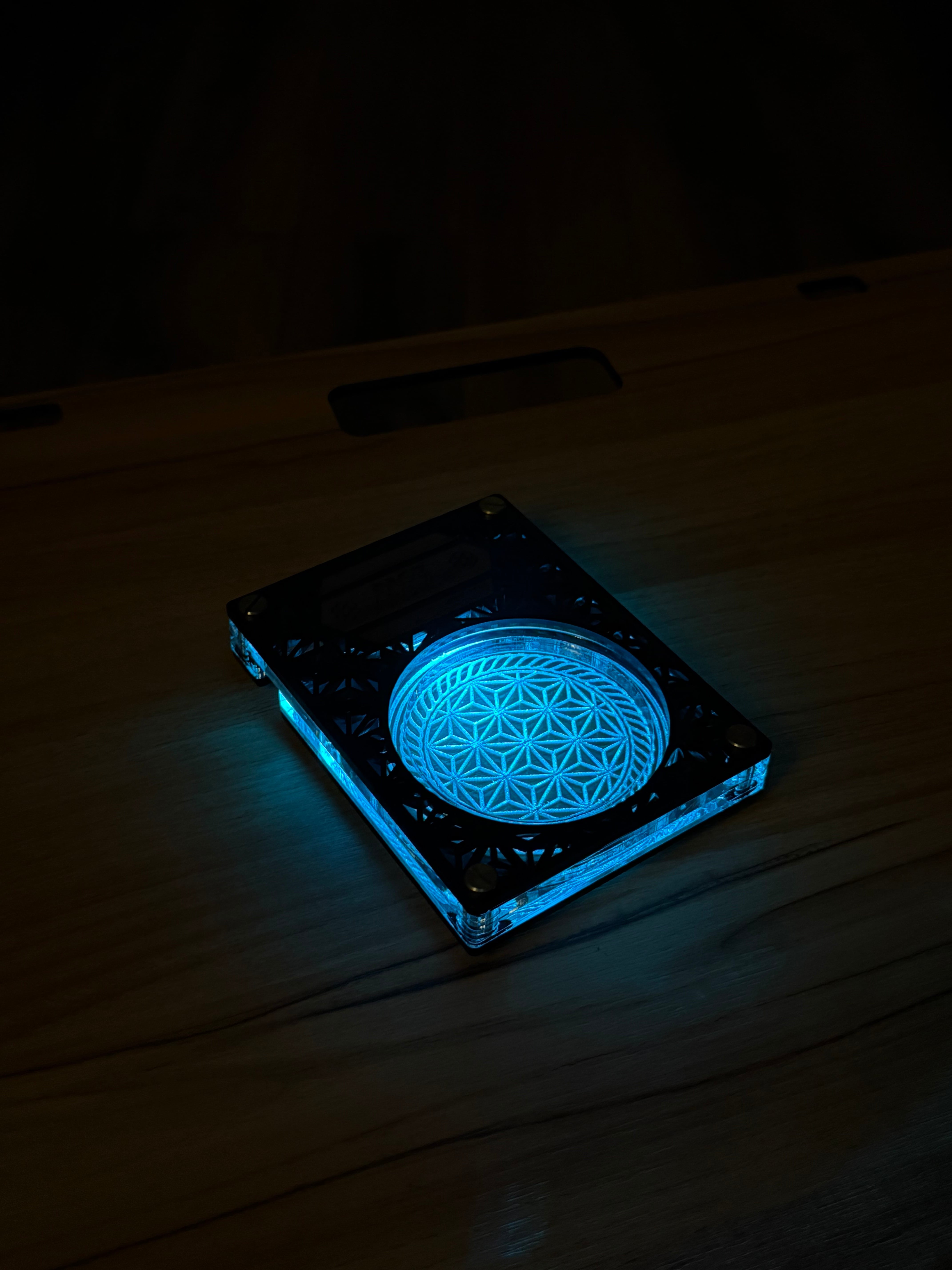 素材:国産アクリル、ウォールナット(ロゴ部)、真鍮ネジ、3M製滑り止めゴム、ランタンスタンド一式