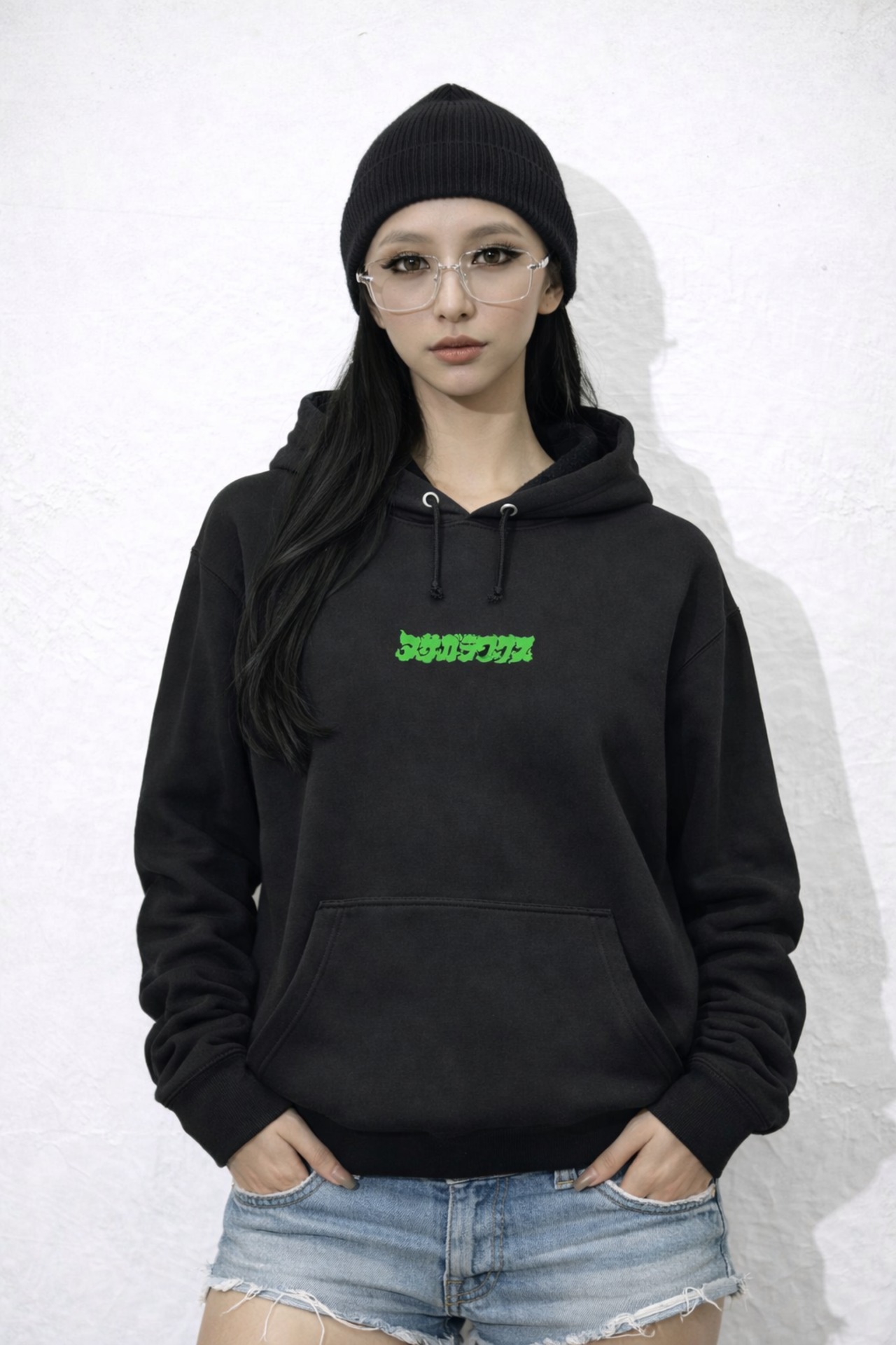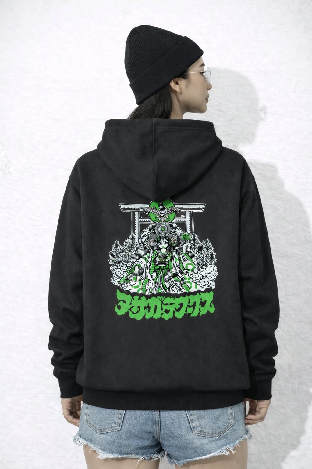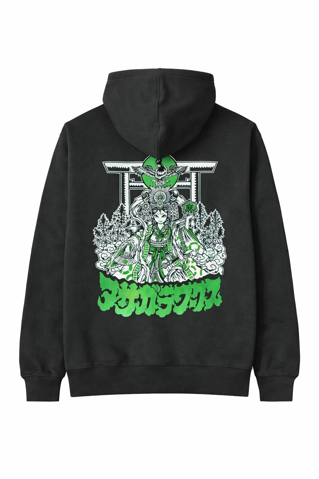 天照大神 ブラック/グリーン 10.0oz スウェット プルオーバー パーカ