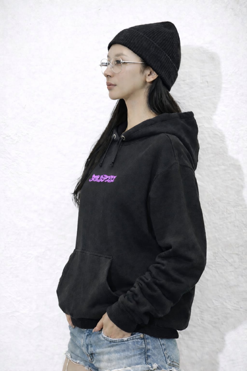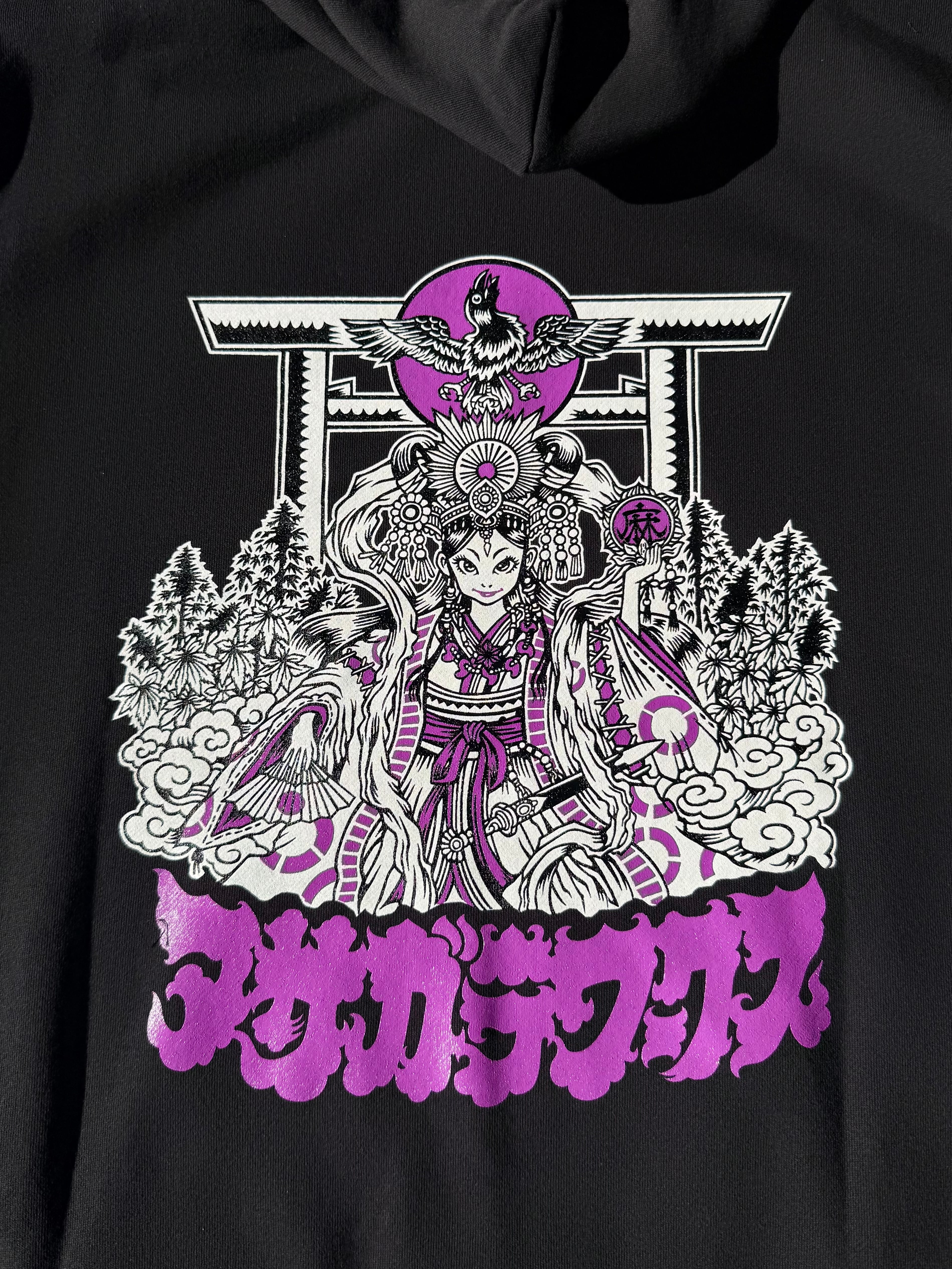天照大神 ブラック/パープル 10.0oz スウェット プルオーバー パーカ