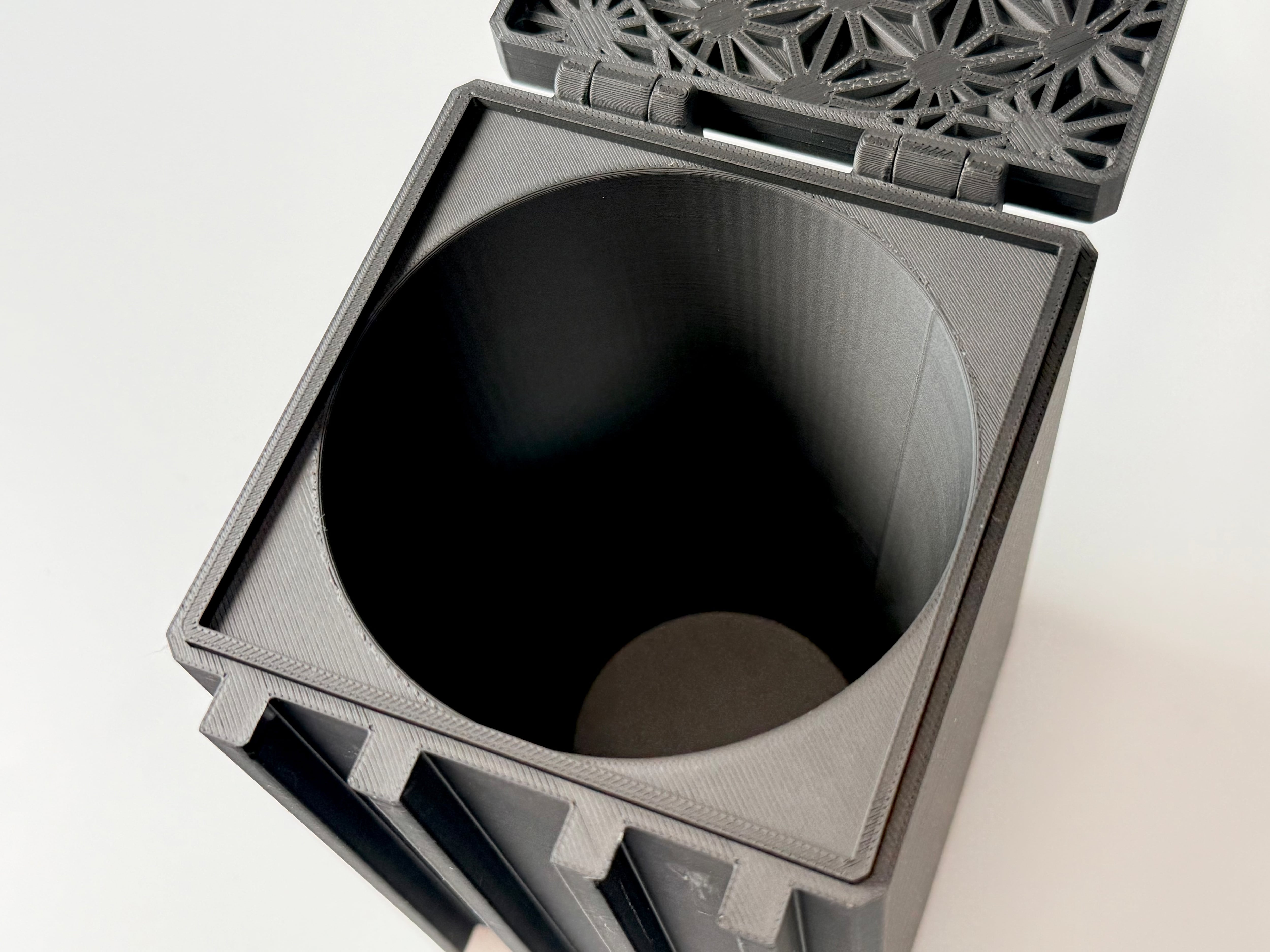 マット質感のPLA樹脂を使用し、無骨でミニマルなデザインに仕上げました。