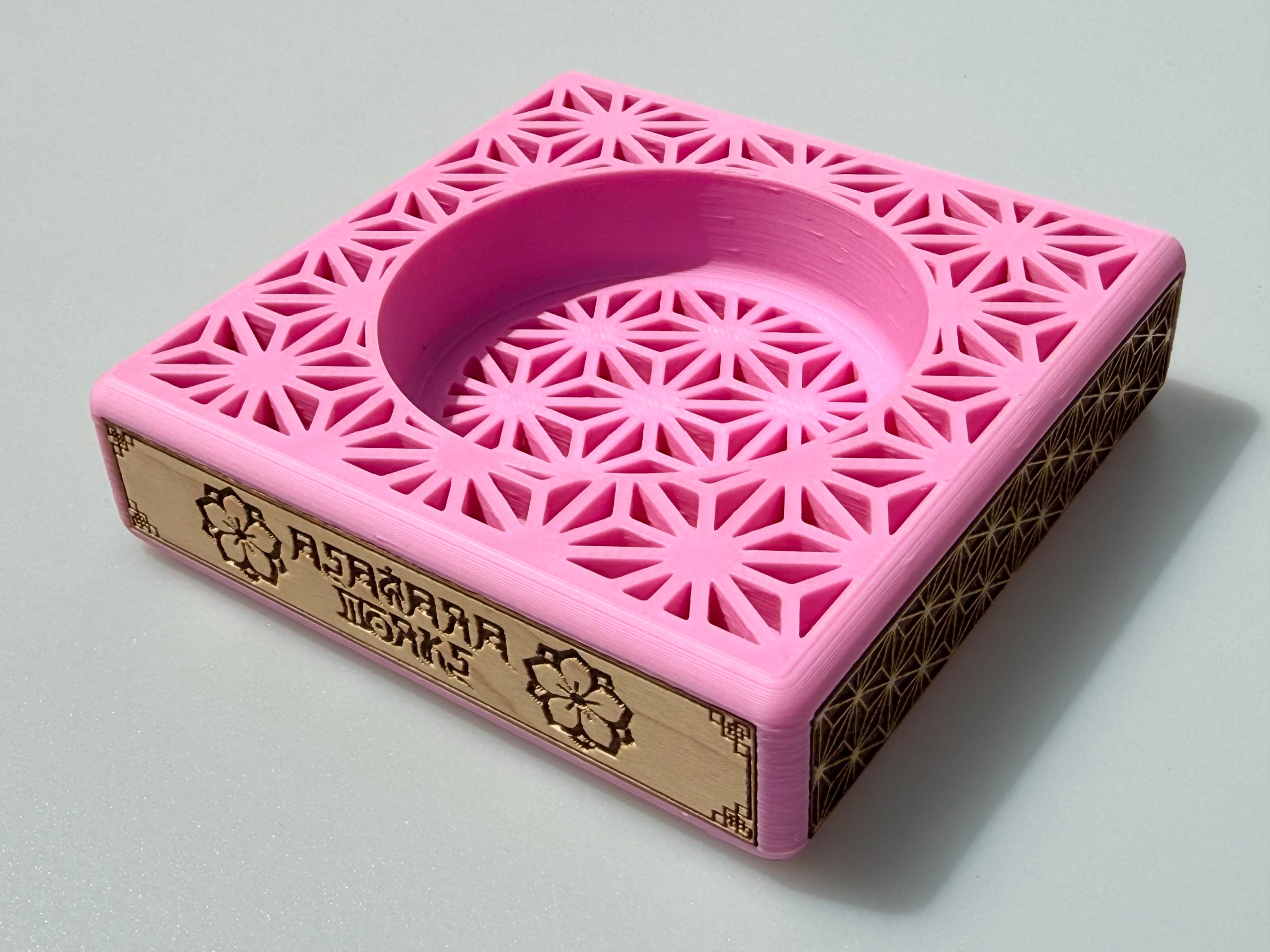 伝統文様「麻の葉」を取り入れた、立体構造の樹脂コースター。