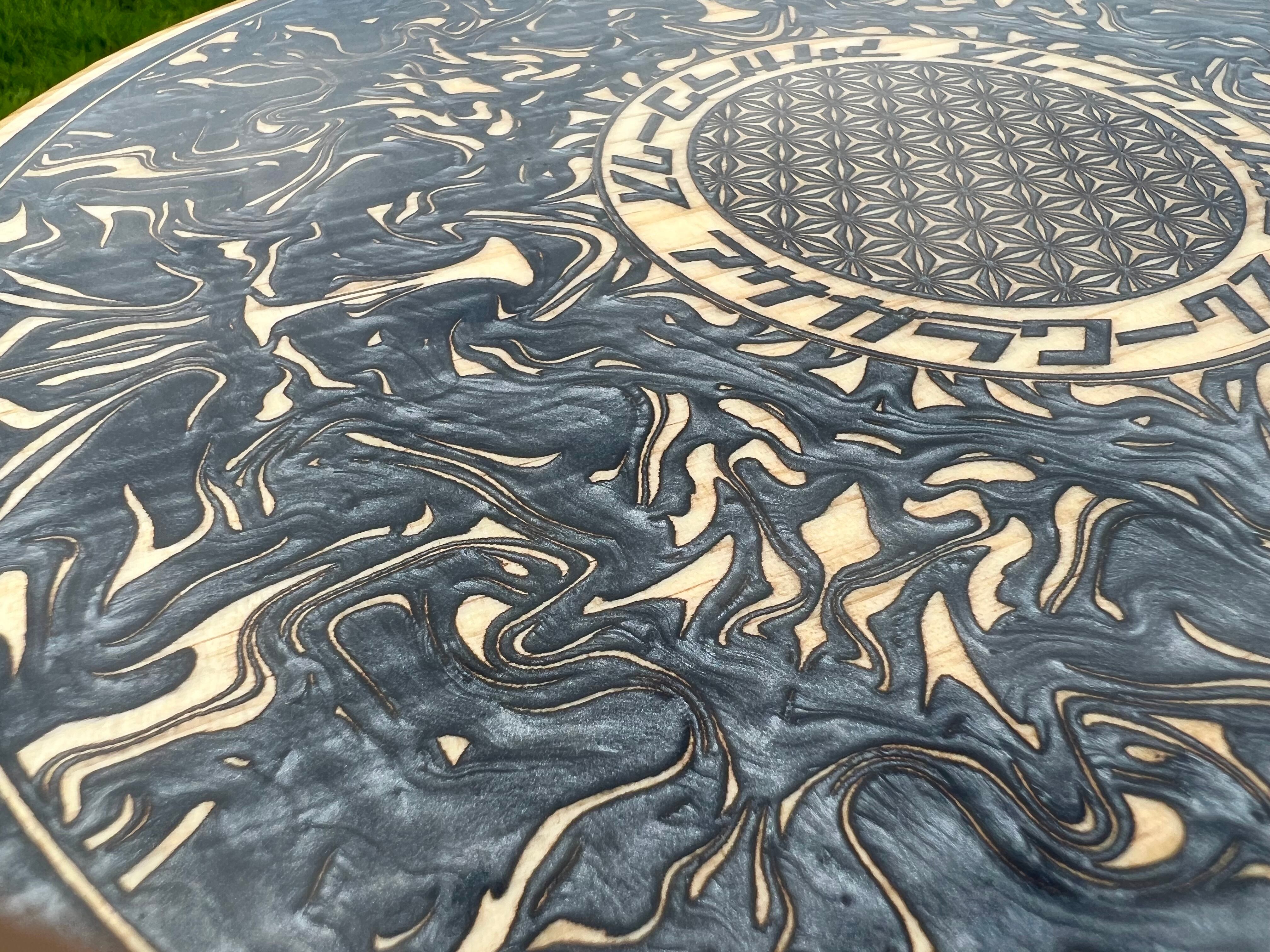 彫刻箇所には粘度の柔らかい蜜蝋をしっかり浸透させ、表裏面を粘度固めのを使用してコーティングをしております。