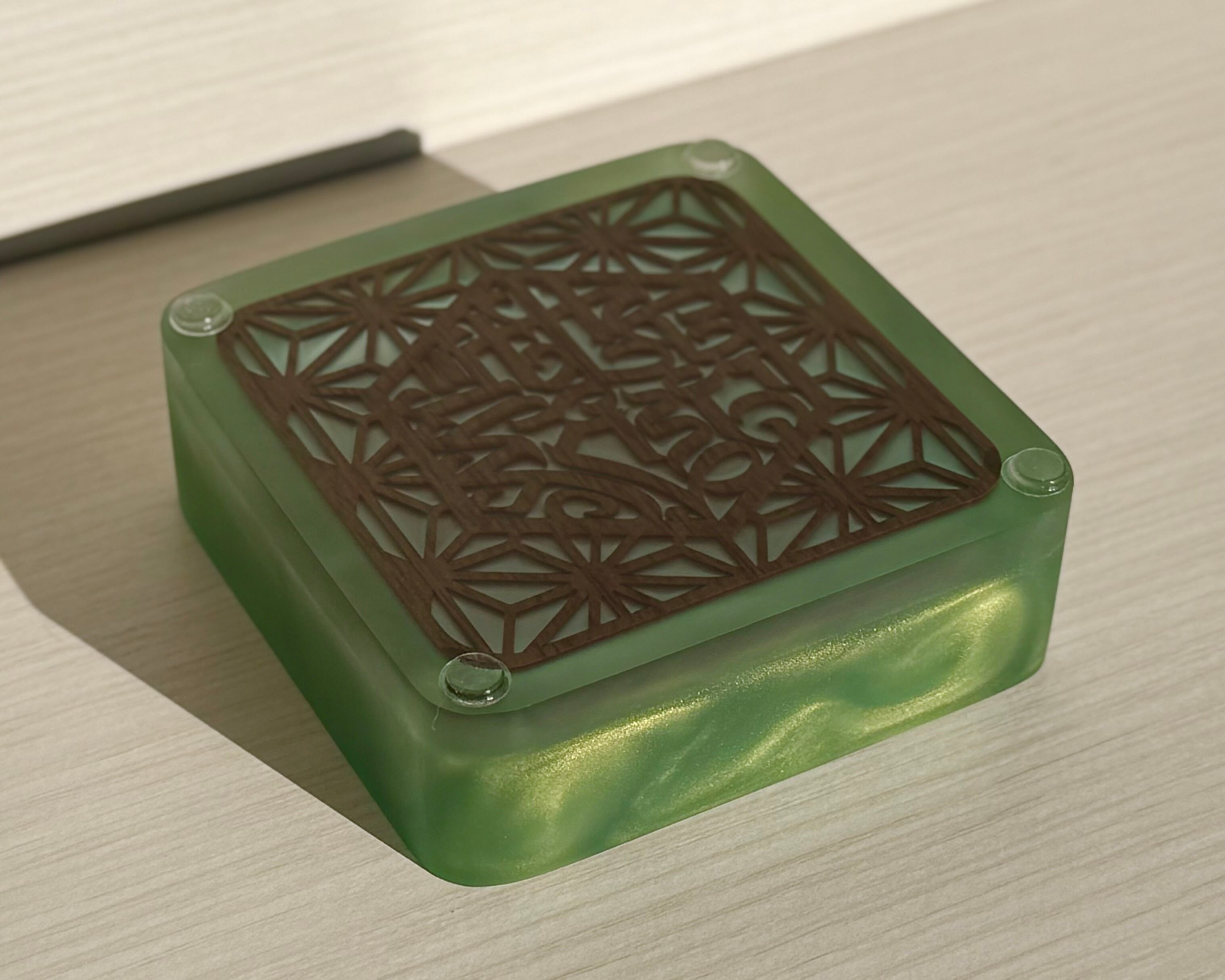 ・こちらの作品は一点物のハンドメイド作品の為、傷や凹み、異物等の付着、空気噛み込みによりクレーター、研磨による曇ハゲ、塗料の着色、色斑、波打っている現象などがレジン表面に見受けられる場合がございます。